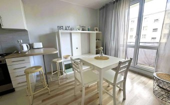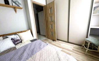 Mieszkanie o pow. ok 37 m2, składa się z salonu połączonego z aneksem kuchennym, sypialni oraz łazienki razem z WC. Mieszkanie jest bardzo słoneczne, wykończone w klimacie skandynawskim, w pełni umeblowane i wyposażone tak jak na załączonych zdjęciach.