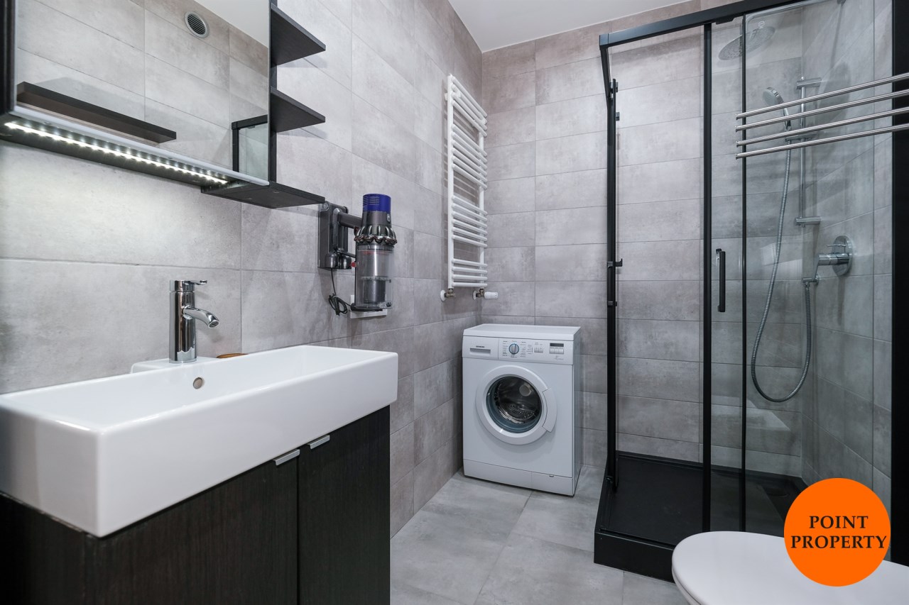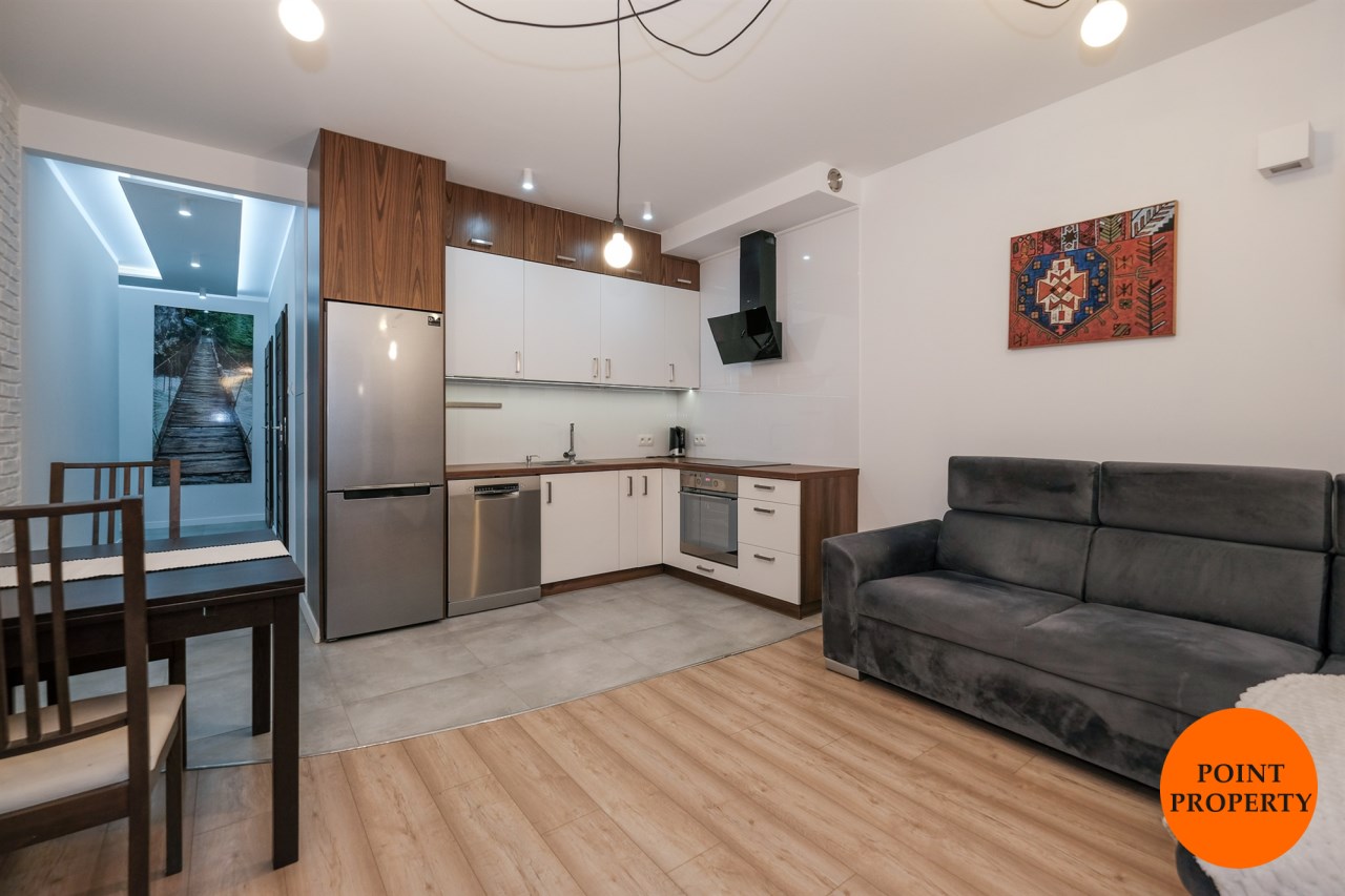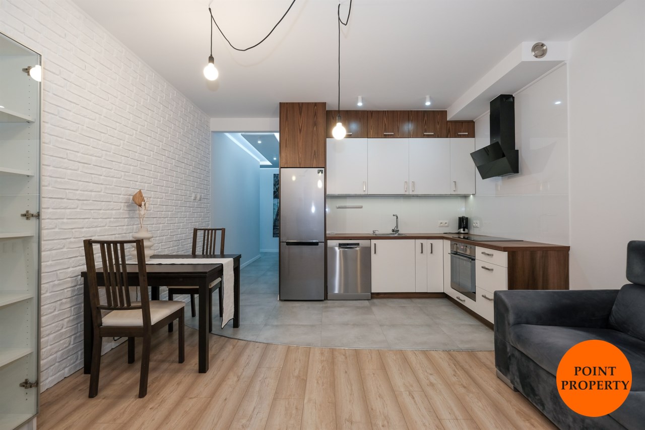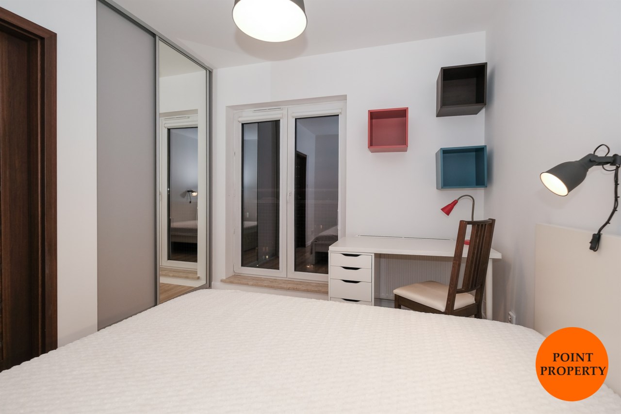 Mieszkanie jest w pełni wyposażone i umeblowane. Dobry standard wykończenia, świetnej jakości sprzęty i użyte materiały, liczne szafy to jego główne atuty.