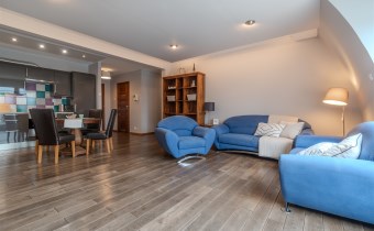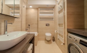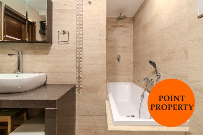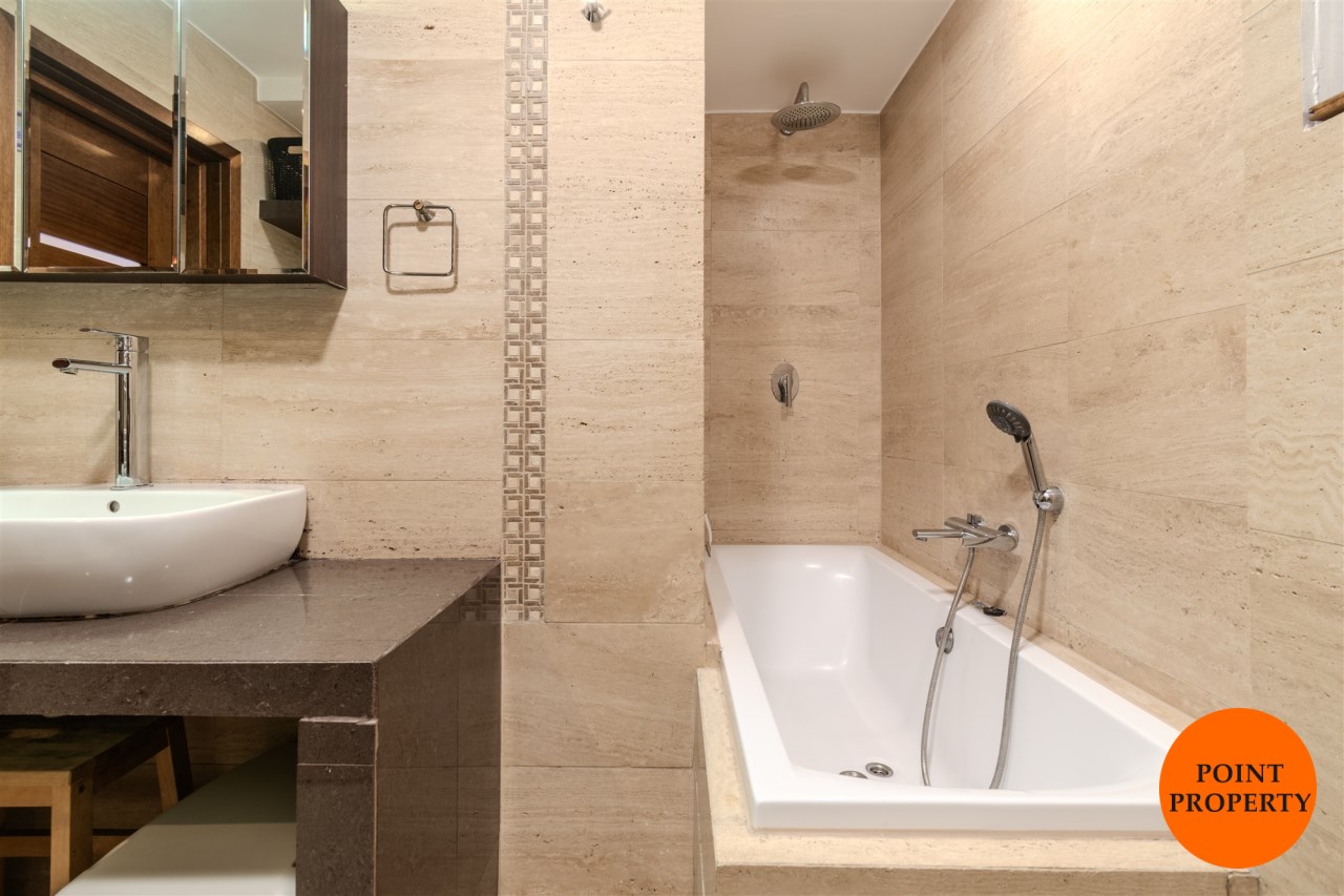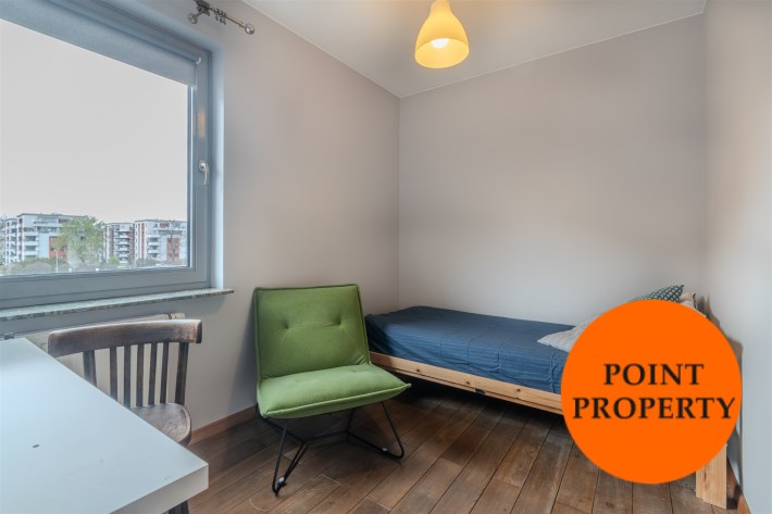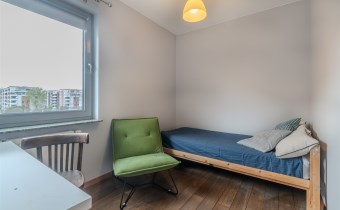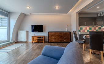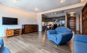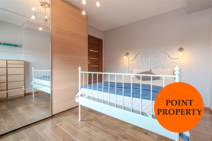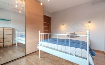Składa się z: pokoju dziennego wraz z aneksem kuchennym i wyjściem na duży, ustronny taras, 2 sypialni, łazienki z wanną i przedpokoju.