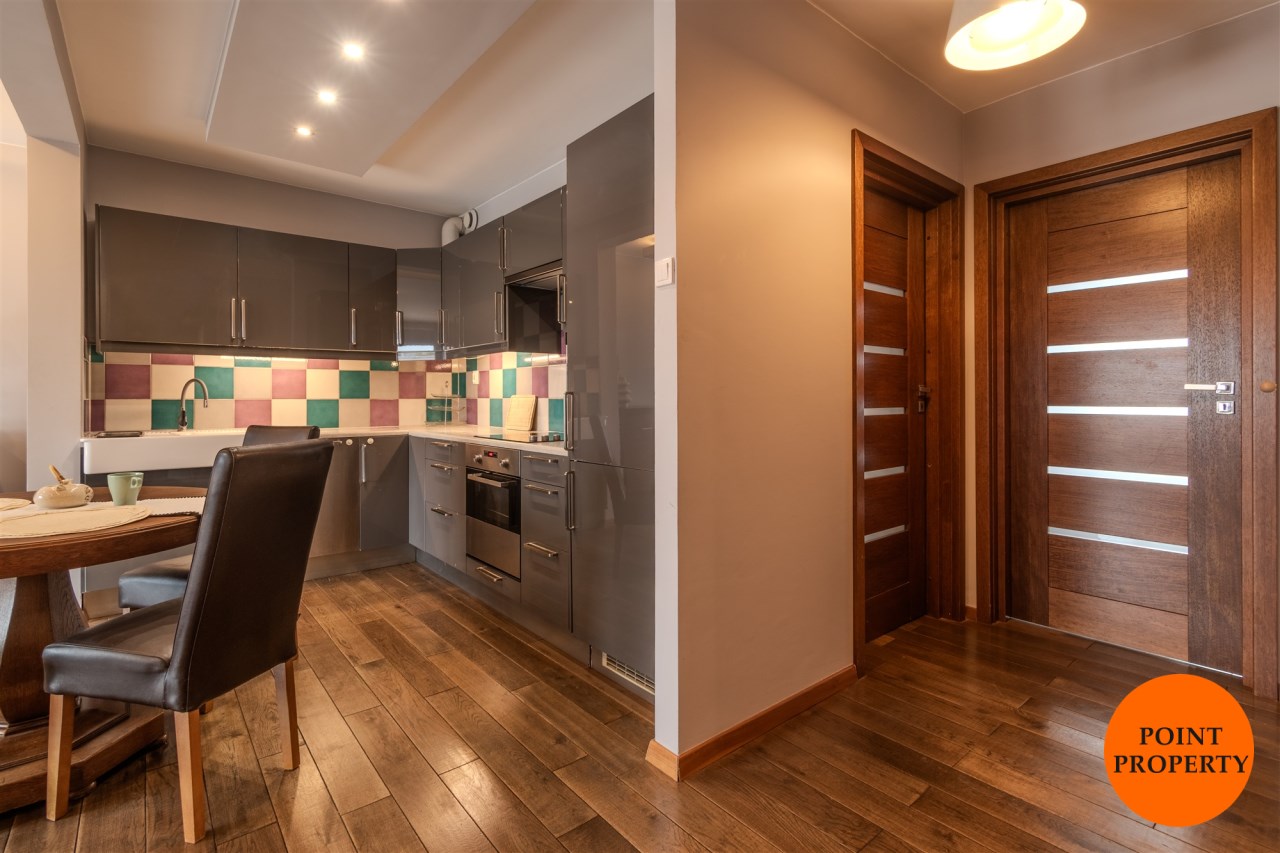 Mieszkanie jest umeblowane i wyposażone: w kuchni znajdują się min. lodówka, kuchenka, płytą indukcyjną, w części jadalnianej stół z krzesłami. Zapraszam do obejrzenia zdjęć.